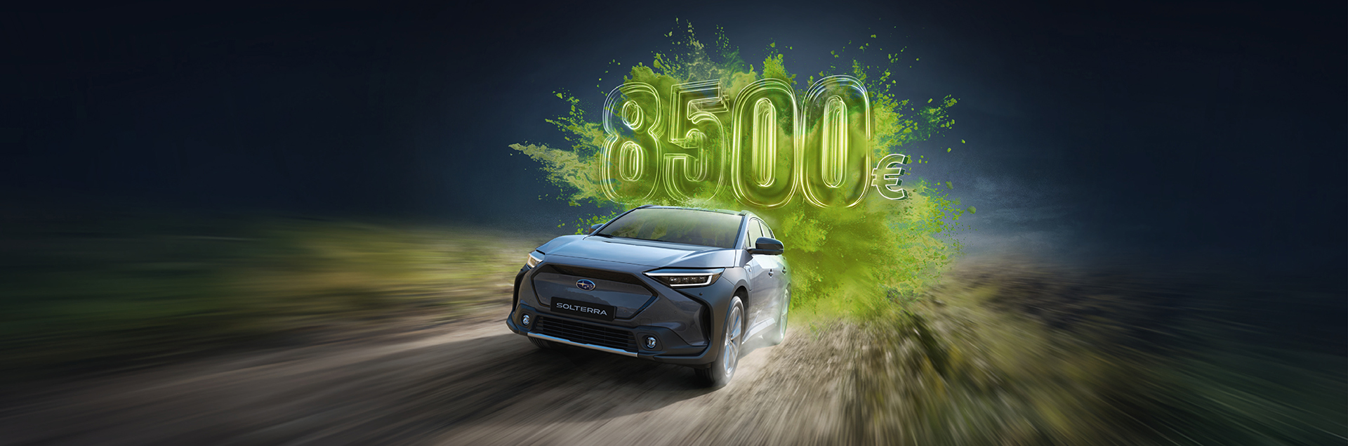 1 Die Aktion gilt vom 29.12.2025 bis 31.03.2026 in Verbindung mit dem Kauf eines sofort verfügbaren Subaru SOLTERRA (Vorführwagen und junge Gebrauchtwagen), Zulassung/Besitzumschreibung bis 31.03.2026 bei teilnehmenden Subaru Partnern. Die Aktion wird gemeinsam von der SUBARU Deutschland GmbH und den teilnehmenden Subaru Partnern getragen und ist mit allen Aktionen der SUBARU Deutschland GmbH für das Modell SOLTERRA kombinierbar. Sie sparen 8.500,- €. Weitere Detailinformationen erhalten Sie bei Ihrem teilnehmenden Subaru Partner oder unter www.subaru.de.